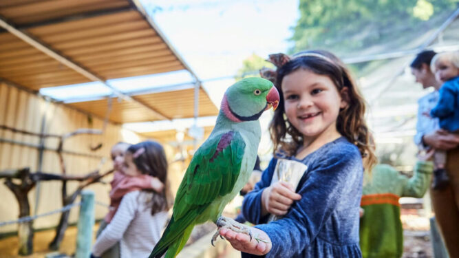 You can also feed birds by hand in one of the park’s walk-through aviaries, meet the park’s kangaroos, and even learn about the conservation efforts that support the park’s mission. You can also join one of the daily keeper talks, such as the “Reptile Rendezvous” or “Meet the Kangaroos” sessions.