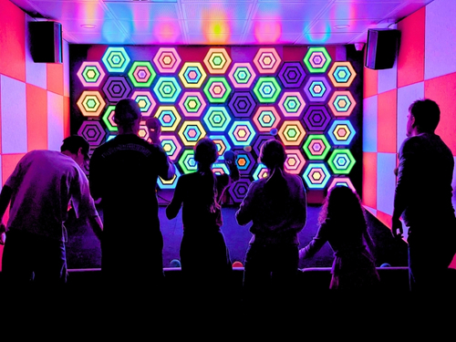 Pixels uses giant retro gaming controllers to move pixel blocks across a huge screen that evokes excitement for younger players and nostalgia for adults. Tap your way to scoring points in a game that’s big, bright and perfect for groups.
