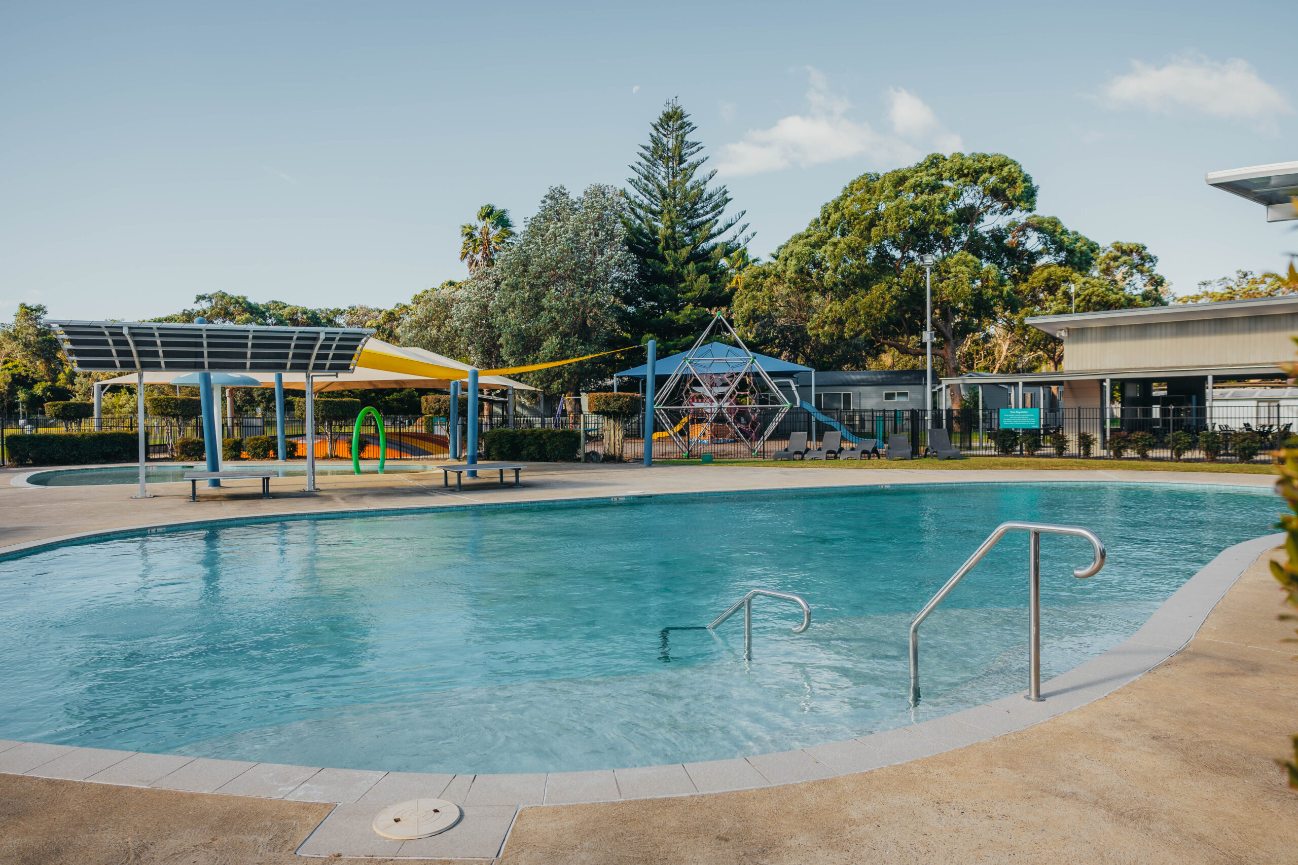 While the surrounding natural beauty is undoubtedly the star attraction, Holiday Haven Shoalhaven Heads ensures you’ll never be short of things to do within the park itself. Unwind by the solar-assisted heated pool or take a dip in the refreshing aquatic playground. Challenge your family to a game of mini-golf or perfect your backhand on the half tennis court. Younger guests will be thrilled by the jumping pillow and the well-equipped playground. Movie nights under the stars are a delightful way to end the day at the covered cinema area.