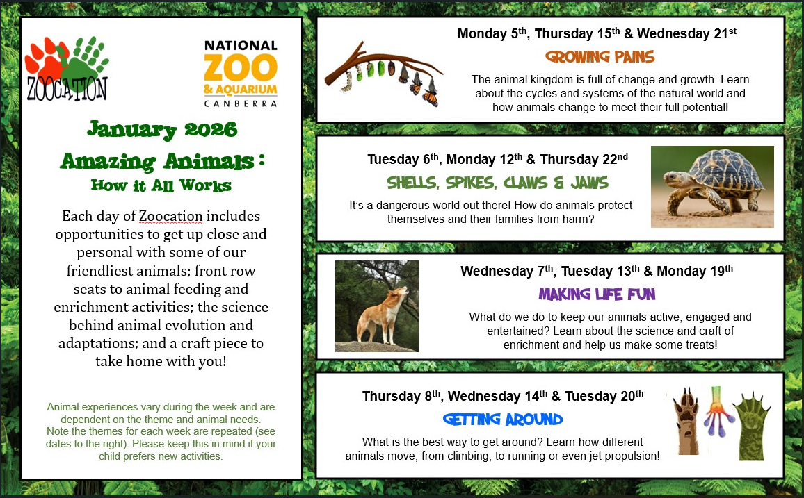 To learn more about our programs, head to our website at www.nationalzoo.com.au/childrens-programs