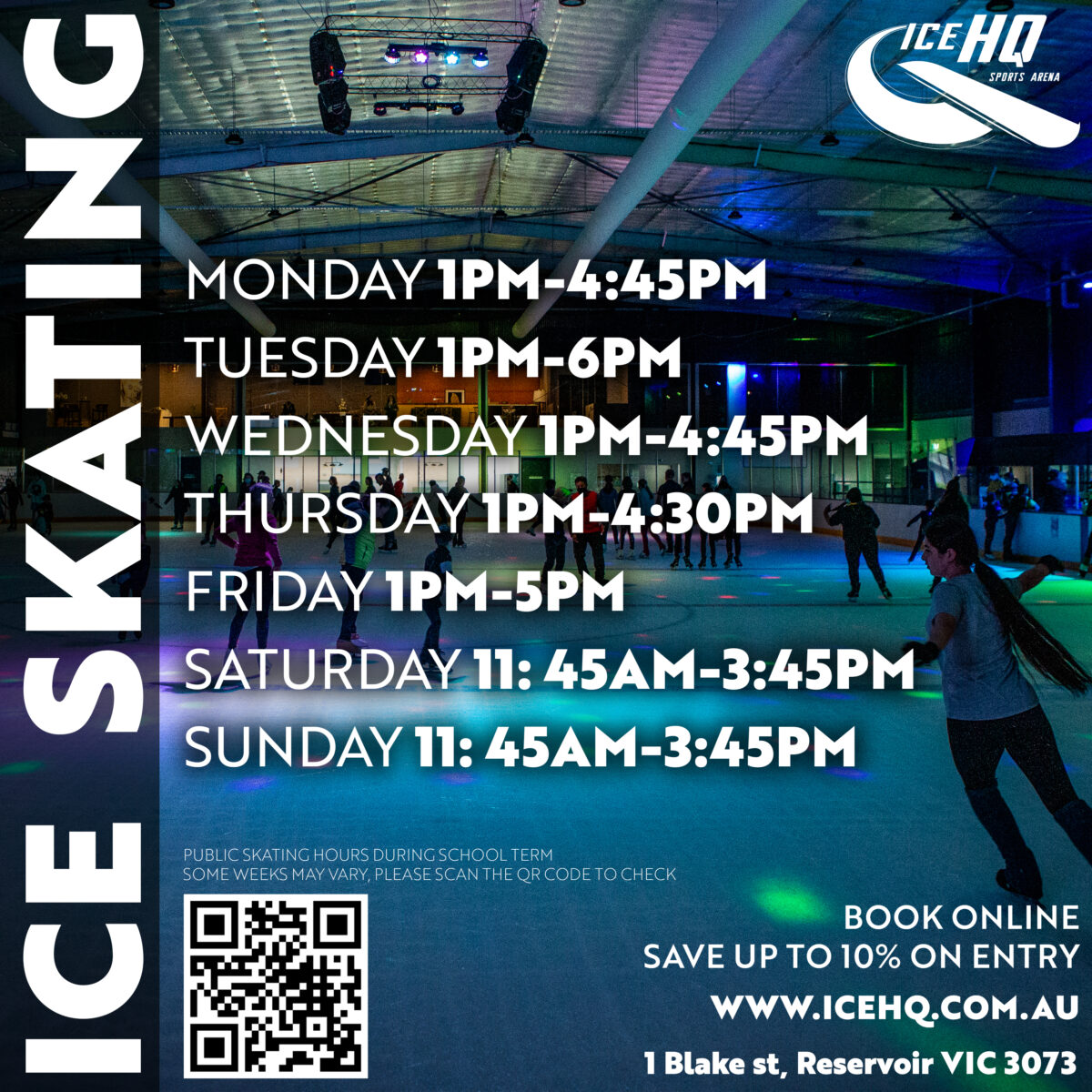 Book your skating session online to save up to 10% on entry prices