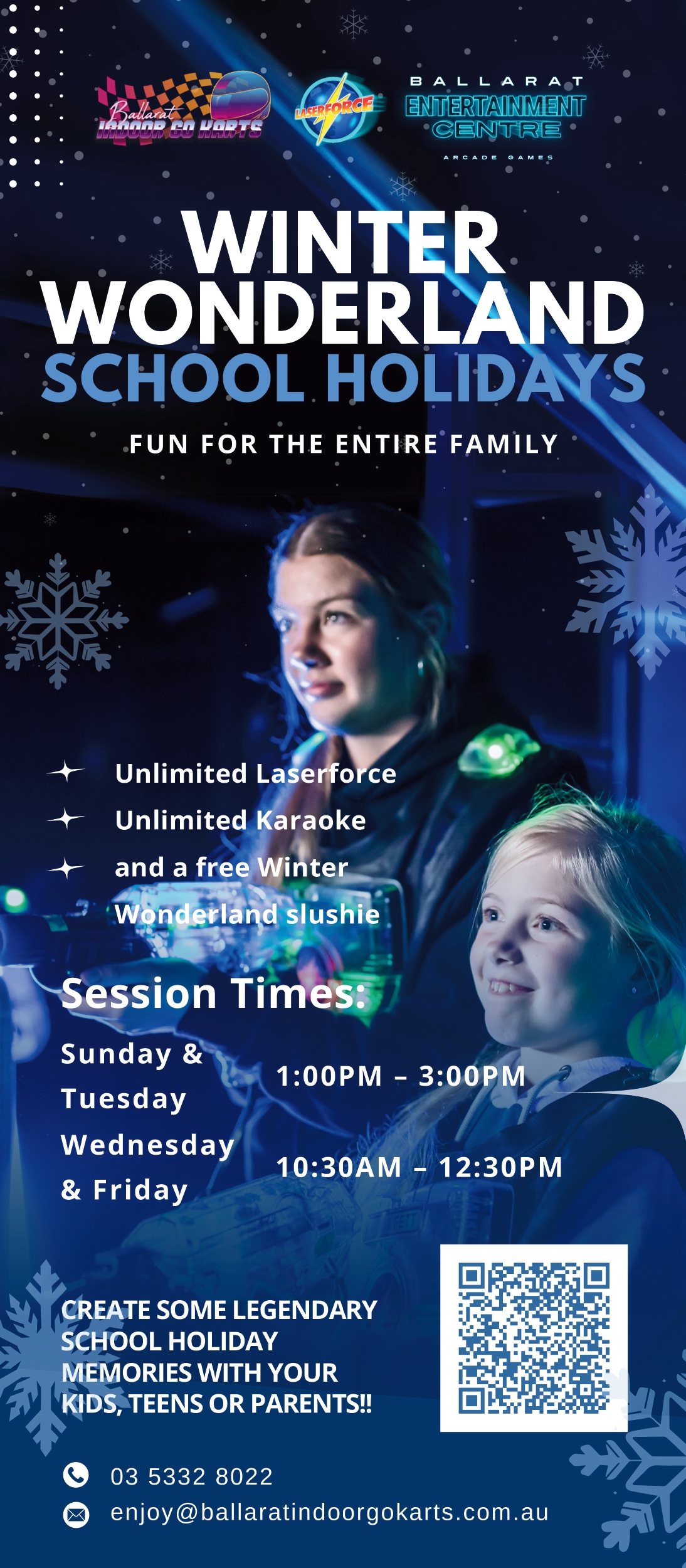 Join us for Winter Wonderland at Ballarat Indoor Go Karts, Laserforce & Winter Wonderland at Ballarat Indoor Go Karts, Laserforce & Entertainment Centre and enjoy: